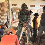 Babinsa Bersama warga bergotong royong Membantu yang terdampak Banjir dan Longsor