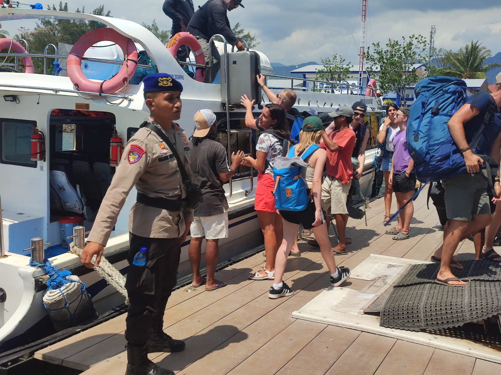 Di Pelabuhan Bangsal, personel juga memantau aktivitas bongkar muat kapal penumpang menuju Bali dan Gili Tramena. Patroli ini dilakukan untuk memastikan seluruh proses berjalan aman, lancar, dan tertib, mengingat pelabuhan tersebut merupakan salah satu titik vital arus transportasi laut di NTB.