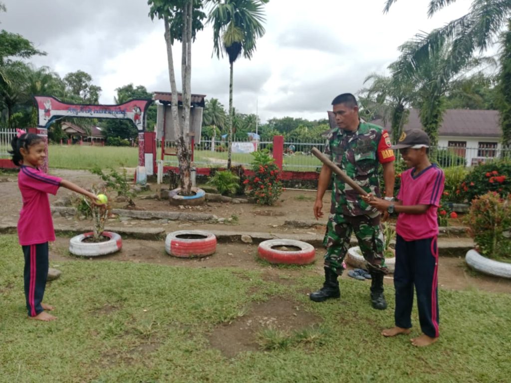 Selanjutnya Babinsa memberikan latihan cara memukul bola kasti kepada anak-anak tersebut. Bertempat di Lapangan SD Negeri 3 Sibabangun.kamis (13/11/2025).