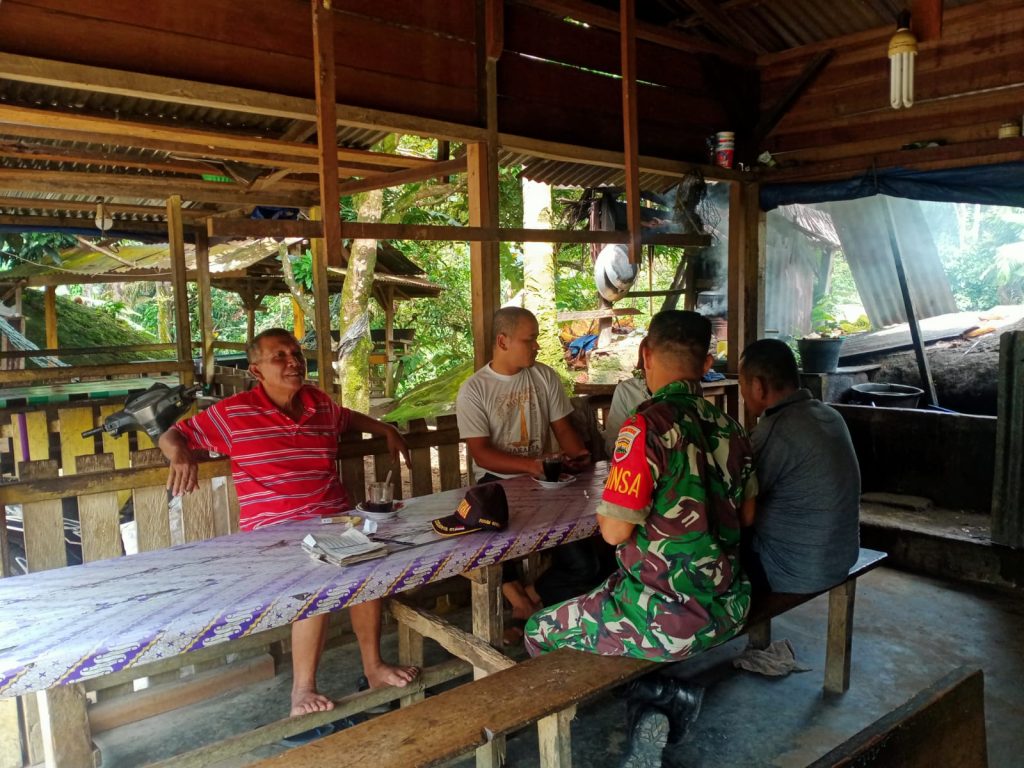 Tapteng-Babinsa Koramil 01 /Barus KODIM 0211/ TTSertu Patar Giat Simbolon sedang melaksanakan Komunikasi sosial(Komsos)bersama masyarakat kelurahan Sosorgadong kecamatan Sosorgadong di warung milik Pak Kasri Simatupang di lingkungan II kelurahan Sosorgadong Kecamatan Sosorgadong Kabupaten Tapanuli Tengah.