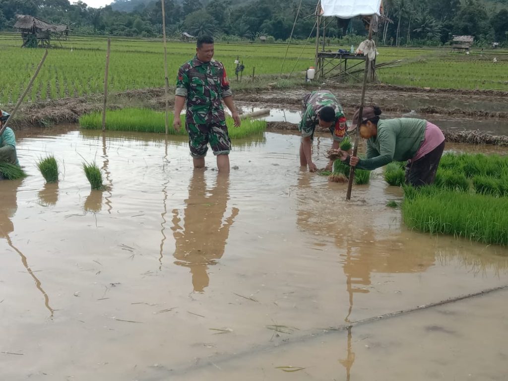 Tapteng_Dalam upaya meningkatkan ketahanan pangan dan produktivitas pertanian di Kelurahan Lumut, Kabupaten Tapanuli Tengah,Koptu Roni Nasution anggota Kodim 0211/TT, Babinsa Koramil 04/Pinangsori,aktif turun ke lapangan untuk membantu para petani. Kali ini, ia terlibat langsung dalam kegiatan Penanaman padi di lahan pertanian ibu Diana hasibuan, Kegiatan yang berlangsung pada Rabu (09/04/2025) ini bertujuan untuk Meningkatkan Ketahanan Pangan .