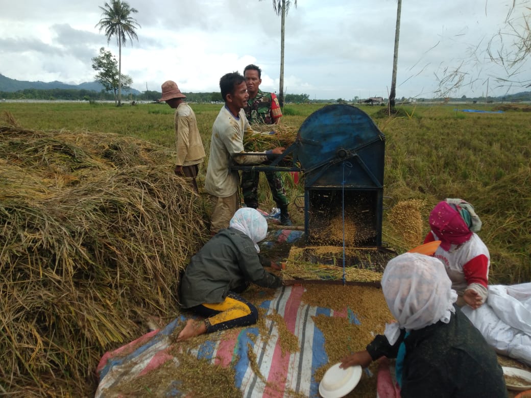 Wujud dukungan TNI khususnya prajurit kewilayahan yaitu Babinsa dalam mendukung ketahanan pangan, dengan semangat ikut serta terjun langsung ke sawah bantu para petani desa binaannya saat memanen padi, inilah yang dilakukan oleh Babinsa kepada para petani warga desa binaannya.
