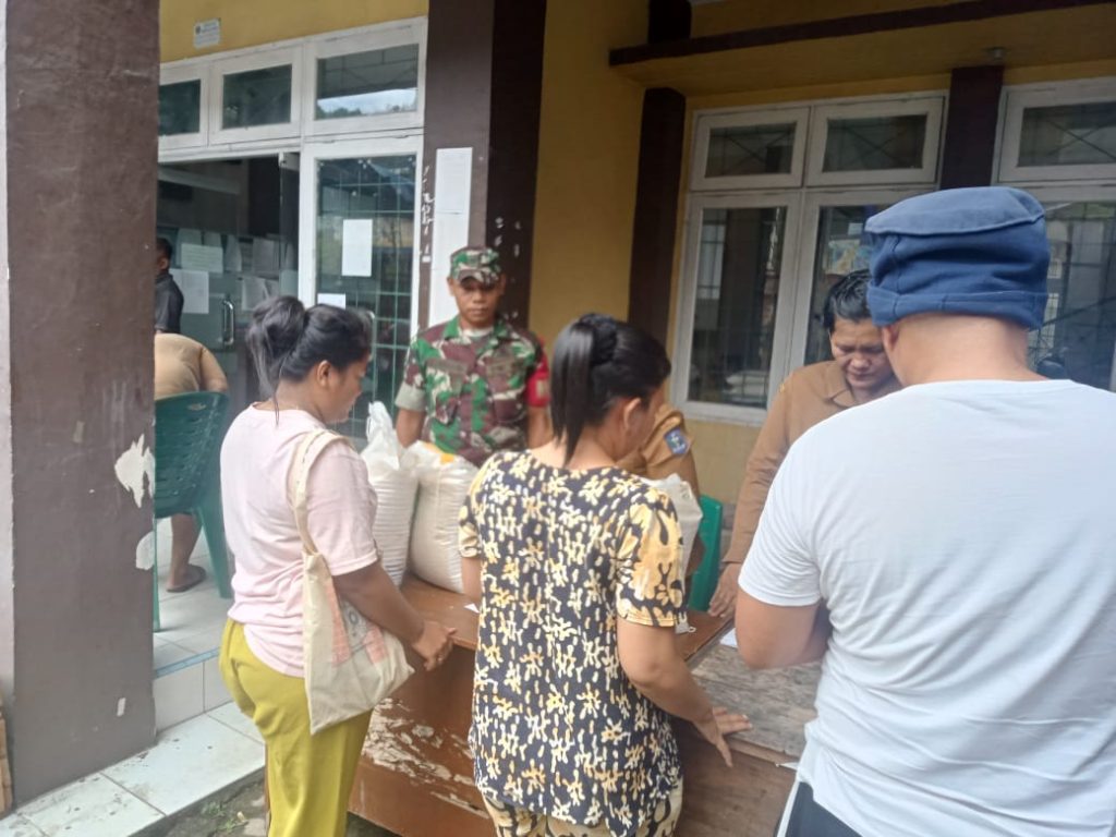 Sertu Erwan S Hutagalung saat mendampingi pembagian beras mengatakan saat ini sebanyak 695 warga Kelurahan Sibolga Ilir mendapatkan bantuan beras dengan masing-masing mendapatkan 20 Kg yang disalurkan langsung oleh Bulog.