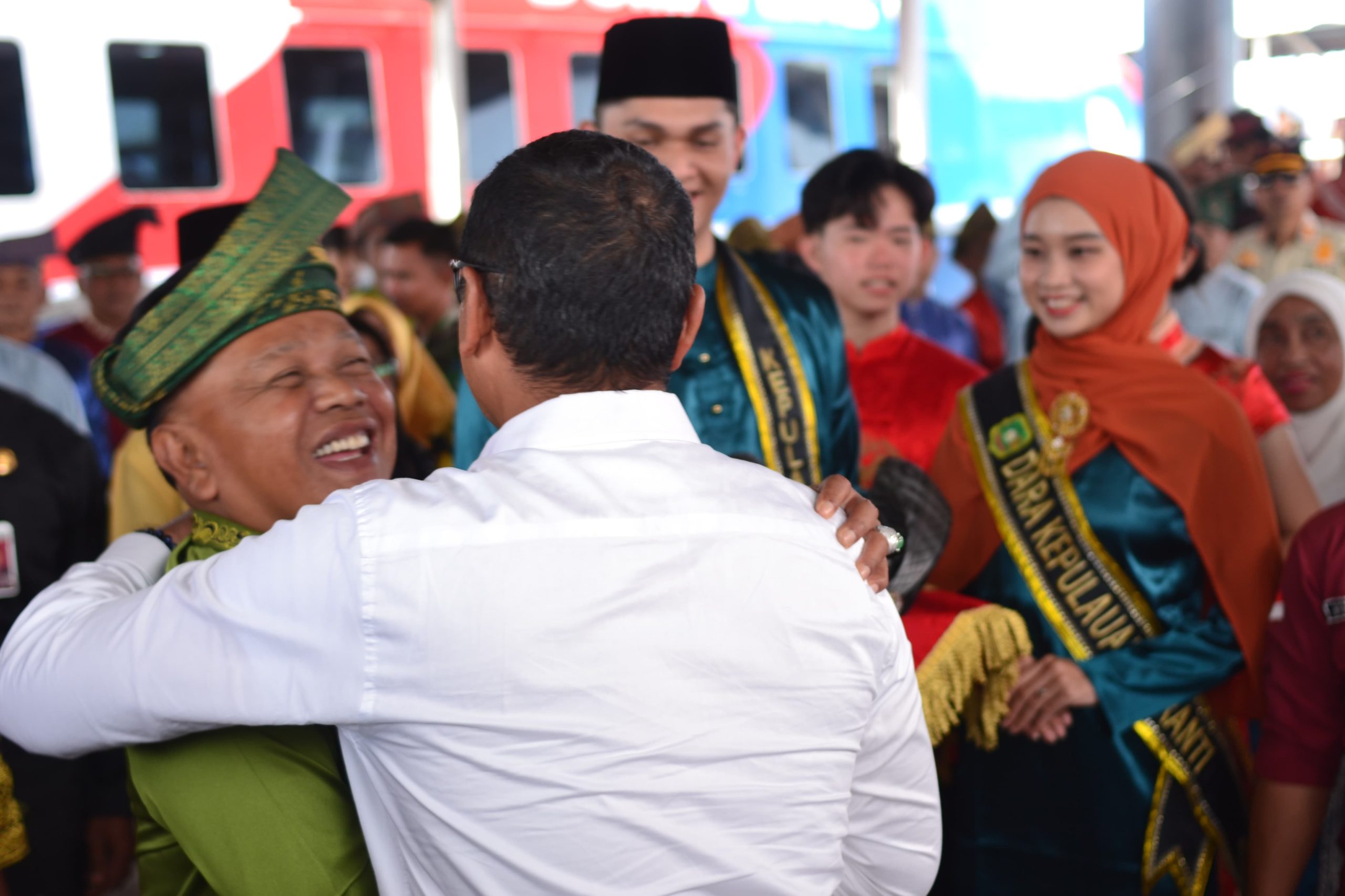 Mediatargetbuser.id. SELATPANJANG – Bupati Kepulauan Meranti, AKBP (Purn) H. Asmar, menyambut kedatangan Sekretaris Utama Badan Nasional Pengelola Perbatasan (BNPP) RI, Komjen Pol. Makhruji Rahman, S.I.K., M.H., M.Tr.Opsla, bersama Deputi Bidang Produksi Wisata dan Penyelenggaraan Kegiatan (Events) Kementerian Pariwisata dan Ekonomi Kreatif Republik Indonesia, Drs. Visensius Jemadu, M.B.A, di Pelabuhan Tanjung Harapan, Selatpanjang, Sabtu (21/2/2026).