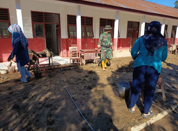 Tapanuli Tengah — Satgas Penanggulangan Bencana Alam (Gulbencal) bersama Kodim 0211/Tapanuli Tengah memfasilitasi penyaluran bantuan perlengkapan sekolah...