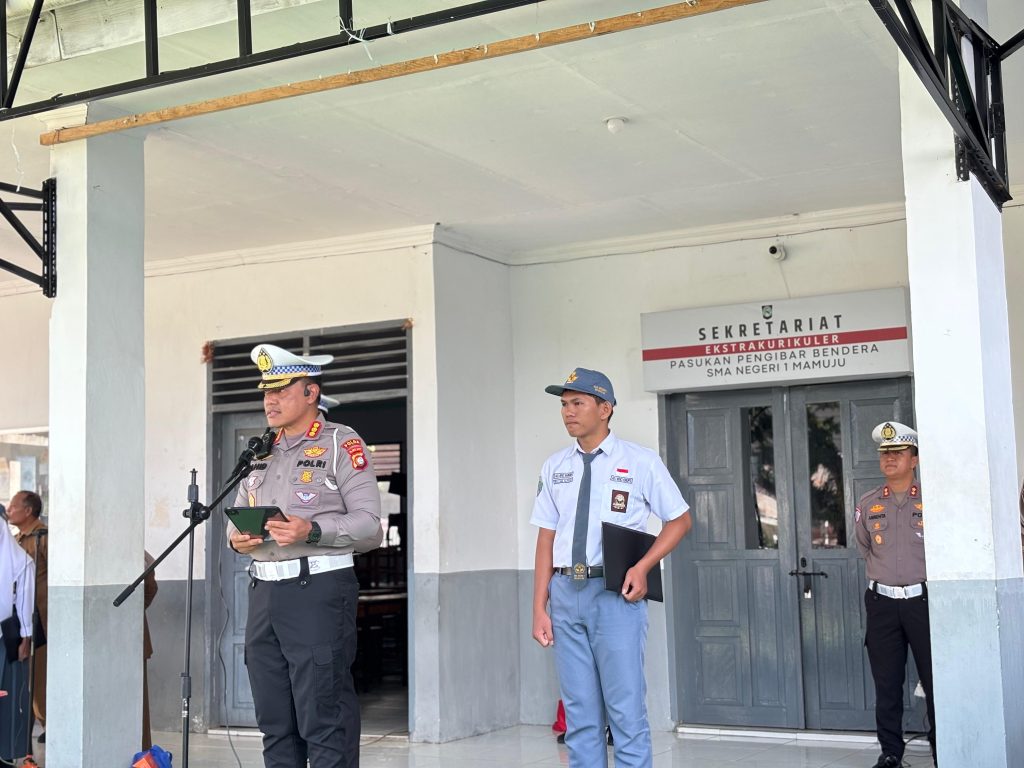 Mediatargetbuser.id, Polda Sulbar – Dalam momen pelaksanaan upacara di Sekolah Menengah Atas (SMA) Negeri 1 Mamuju, Direktur Lalu Lintas Polda Sulbar, Kombes Pol Wahid Kurniawan menginspirasi ratusan siswa/siswi, Senin (19/5/25).