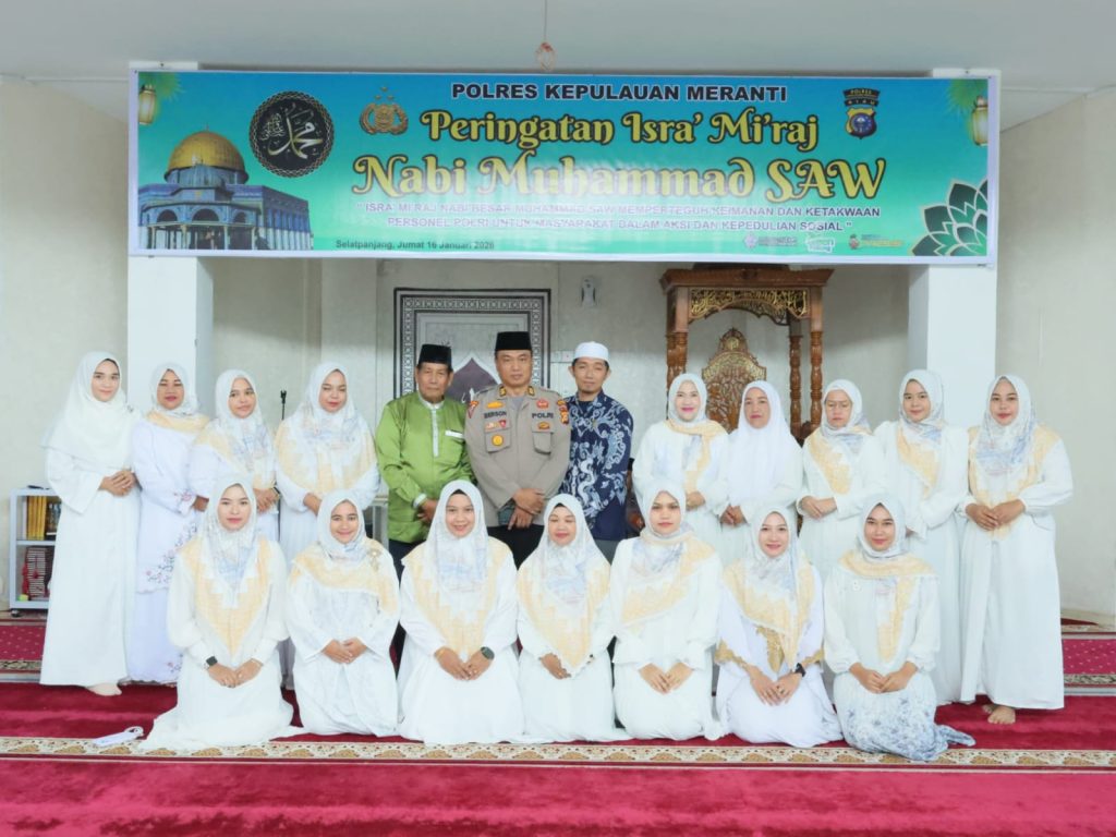 Mediatargetbuser.id. Meranti,- Polres Kepulauan Meranti memperingati Isra Mikraj Nabi Muhammad SAW di Mesjid Ar- Rahman Polre Meranti Jalan Gogok Darussalam Jumat (16/1/2026) Malam.
