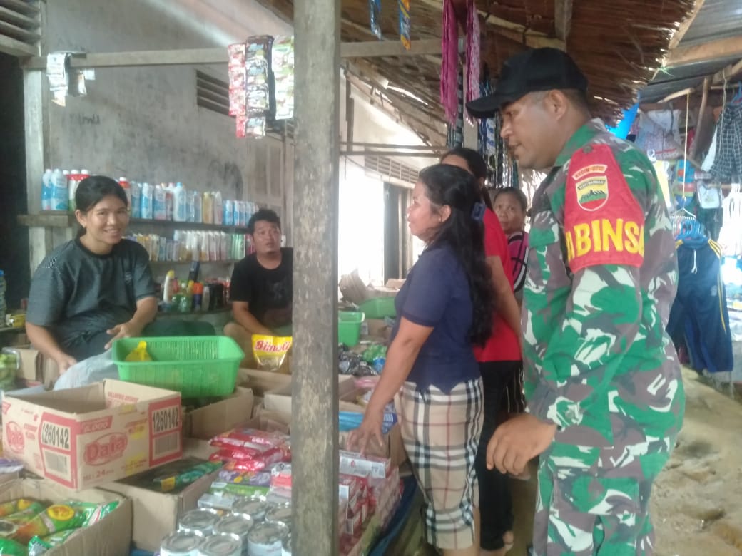 Hendra silaban selaku penjual sembako menyampaikan kepada babinsa,untuk penjualan sembako dan pelanggan yang datang membeli kebutuhan sembako relatif ramai pengunjung untuk membeli bahan sembako, saya selaku penjual dagangan sembako berterima kasih kepada bapak babinsa yang hadir ditengah masyarakat kecil seperti kami dan mengamankan apabila ada terjadi pencurian maupun keributan di pasar kamis ini, Ujarnya.