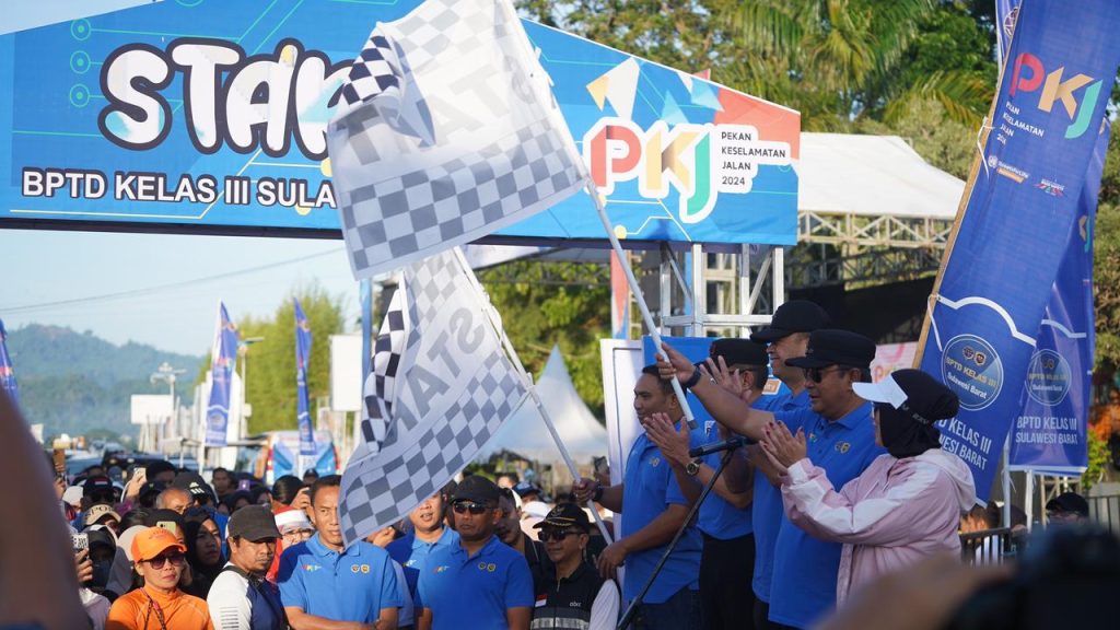 Mediayargetbuser.id, Polda Sulbar – Suasana ceria dan penuh semangat mewarnai kegiatan jalan sehat yang digelar dalam rangka Pekan Keselamatan Jalan Tahun 2024 di Mamuju, Minggu (15/9/24). Ribuan peserta, termasuk Kapolda Sulbar Irjen Pol Adang Ginanjar nampak bersemangat mengikuti kegiatan yang dimulai di depan Hotel d’maleo Mamuju.