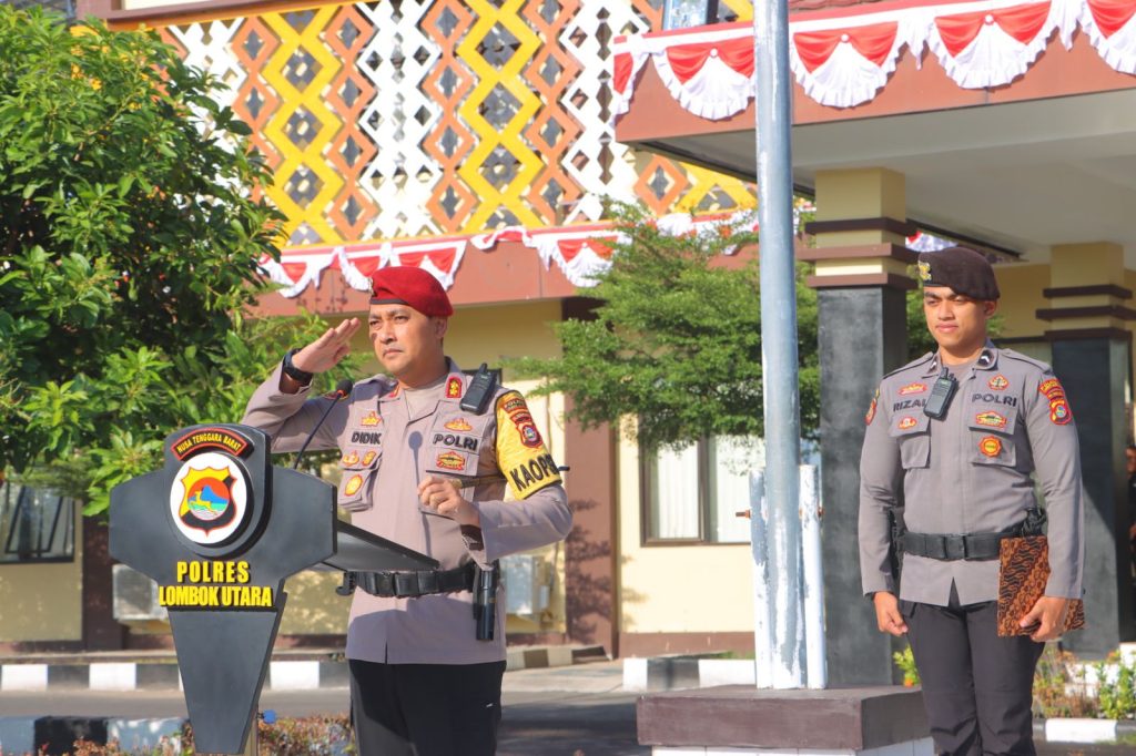 Polres Lombok Utara NTB – Dalam rangka menciptakan harkamtibmas menjelang pelaksanaan Pilkada Serentak Tahun 2024. Kapolres Lombok Utara Pimpin Apel Gelar Pasukan, yang di rangkaikan dengan pemeriksaan pasukan dan Sarana prasarana di halaman Apel Polres Lombok Utara, Jumat (23/08/24).
