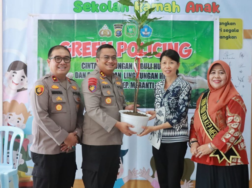 Mediatargetbuser.id. Meranti – Dalam upaya menanamkan kesadaran peduli lingkungan sejak usia dini, Polres Kepulauan Meranti melaksanakan kegiatan Sosialisasi Green Policing yang dikemas dalam bentuk penanaman pohon di Sekolah KB-TK Kristen Kalam Kudus Selatpanjang, Senin (6/10/2025) pagi.