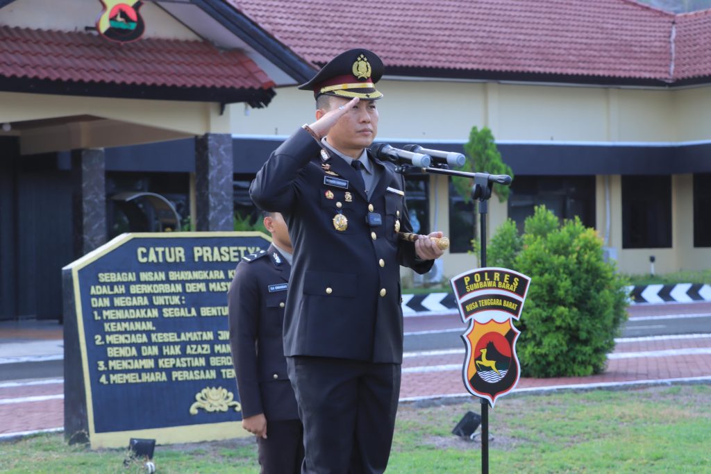 Upacara dipimpin oleh Kapolres Sumbawa Barat AKBP Yasmara Harahap, S.I.K selaku Inspektur Upacara dan diikuti oleh peserta upacara antara lain Waka Polres Sumbawa Barat, para Pejabat Utama Polres Sumbawa Barat, Kapolsek Jajaran, Perwira Polres dan seluruh anggota Polres Sumbawa Barat serta satu pleton Brimob dari Kompi 2 Yon B pelopor.