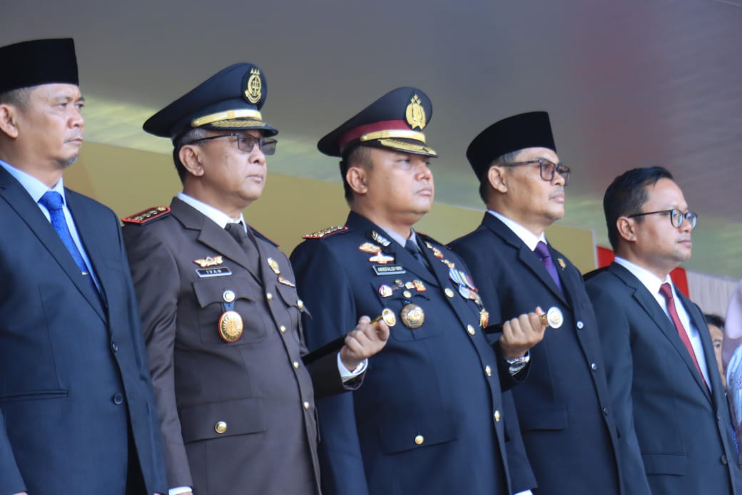 Mataram NTB – Kapolresta Mataram Kombes Pol Dr Ariefaldi Warganegara SH SIK MM CPHR CBA CHRM mengikuti Upacara Peringatan Hari Ulang Tahun Kota Mataram Ke-31 Tahun 2024 bertempat di Lapangan Taman Sangkareang Kota Mataram. Sabtu, (31/08/2024)