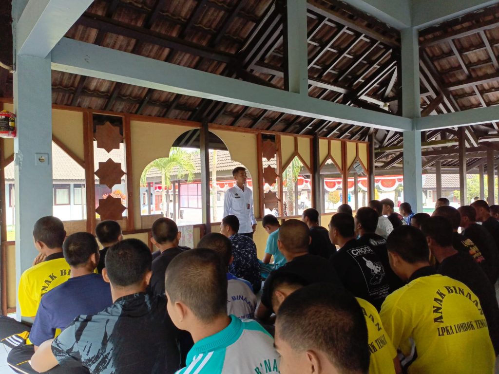 Targetbuser.id Lombok Tengah – Kepala Seksi Registrasi dan Klasifikasi Lembaga Pembinaan Khusus Anak (LPKA) Kelas II Lombok Tengah, Kantor Wilayah Direktorat Jenderal Pemasyarakatan Nusa Tenggara Barat, Ahmad Saepandi, memberikan pengarahan kepada anak binaan terkait Pengurangan Masa Pidana (PMP) umum, Selasa (19/08).