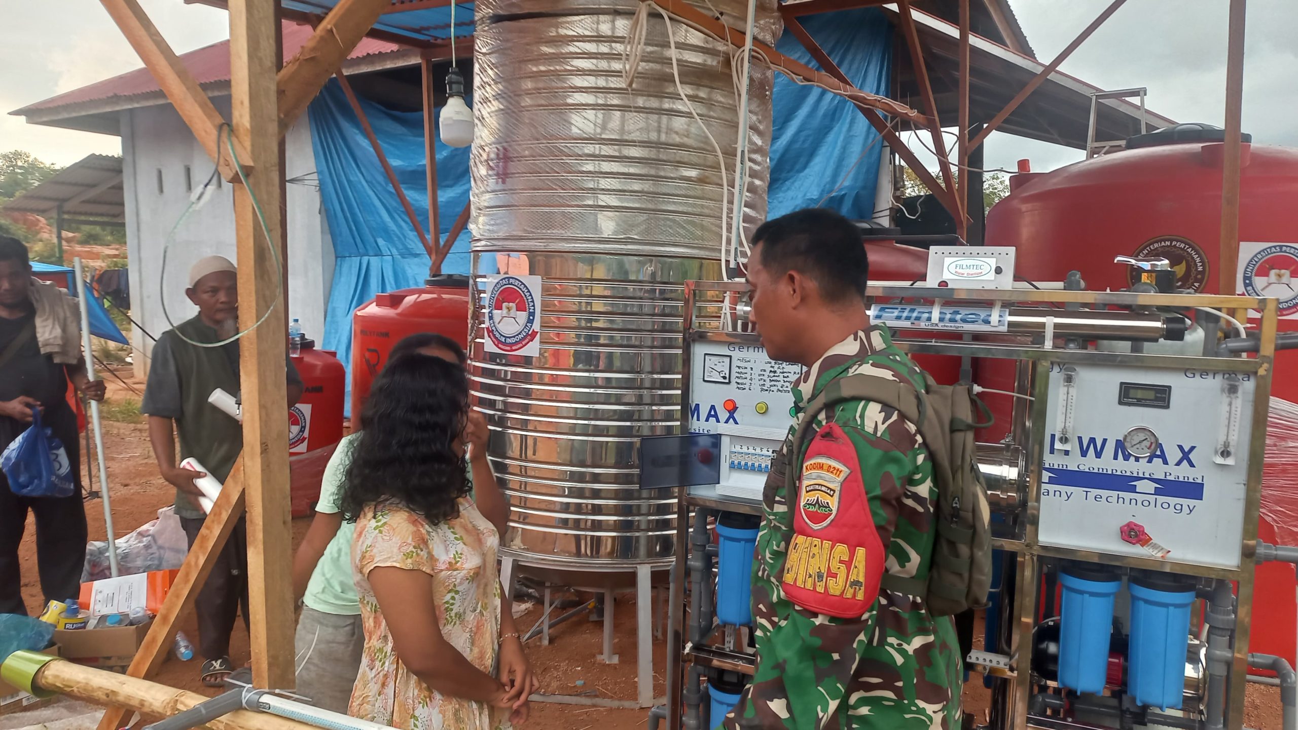 Mesin water treatment RO ini merupakan hasil kerja sama antara Kemenhan dan Unhan, yang bertujuan untuk membantu masyarakat yang terdampak bencana alam. Sumber air yang digunakan adalah sumur bor, dan hasil air RO yang dihasilkan sudah sesuai standar dan dapat langsung diminum.