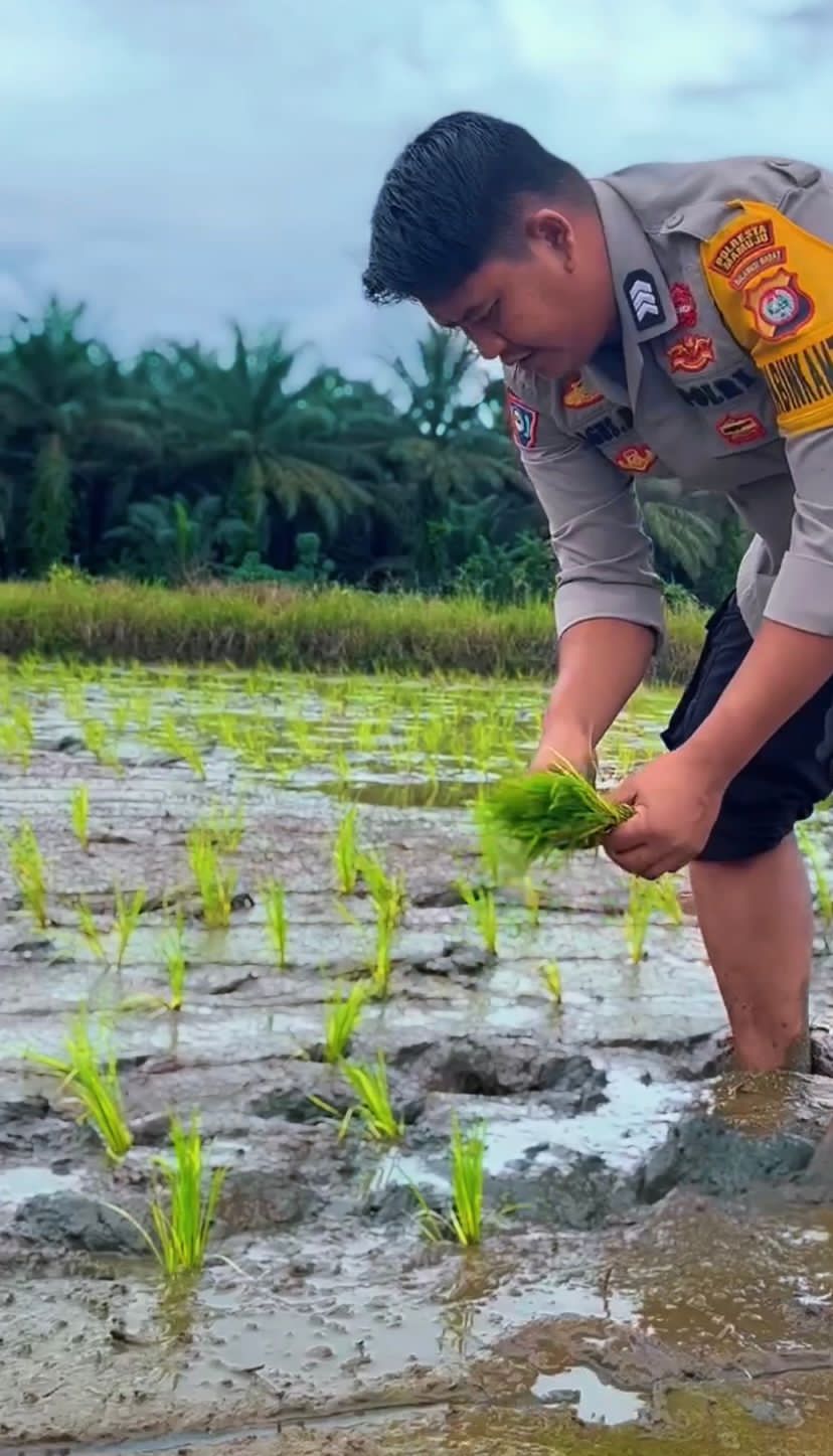 Brigpol Agus AW, bersama dua juniornya, bahu-membahu dengan para kelompok tani di Kakulasan, menanam padi di sawah. Suasana penuh keseruan dan kebersamaan terpancar dari wajah mereka. Semangat untuk meningkatkan ketahanan pangan wilayah menjadi penggerak utama dalam kegiatan ini.