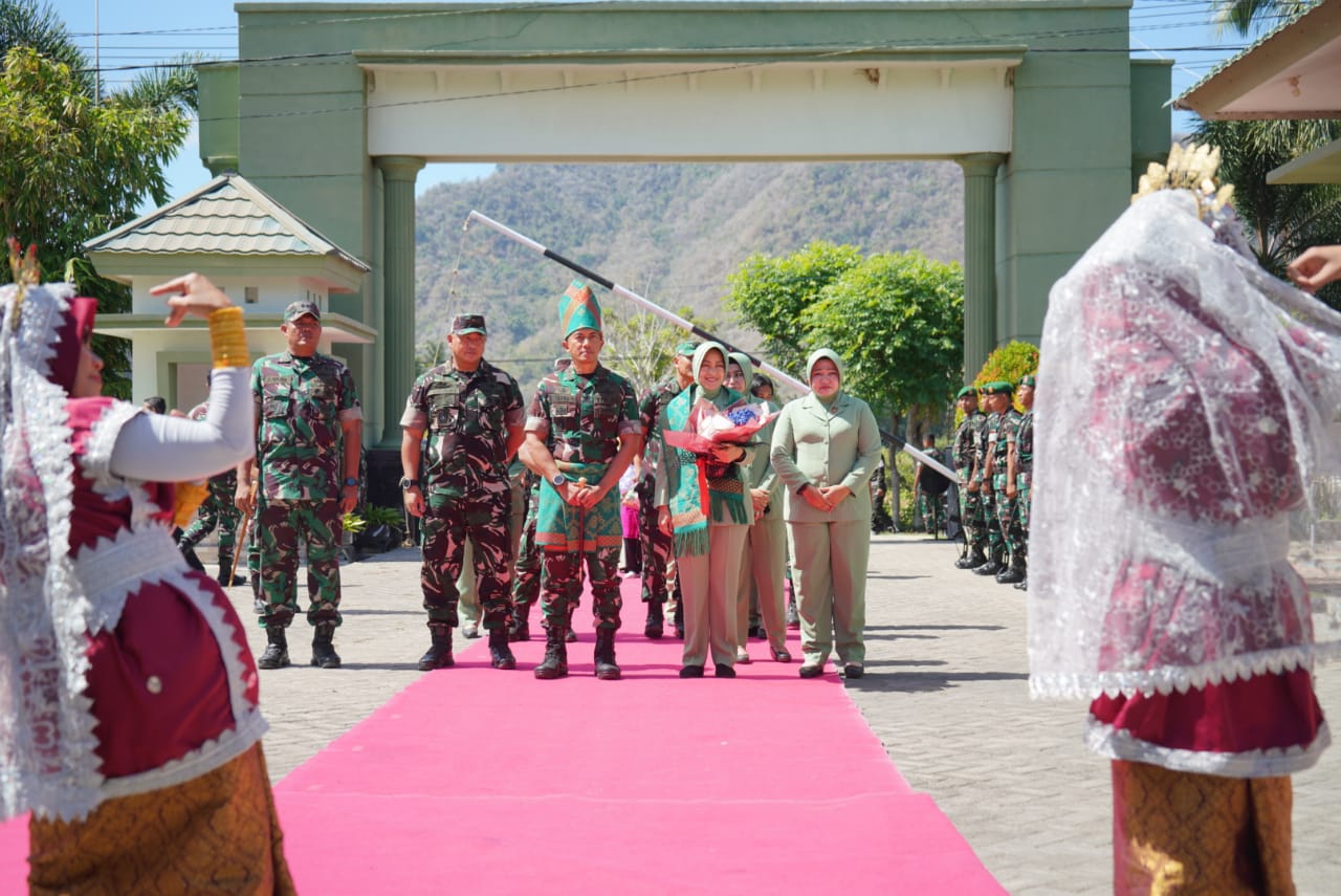 Setibanya di Makodim 1628/SB, Pangdam IX/Udayana dan Ketua Persit KCK PD IX/Udayana disambut dengan penuh kehormatan oleh Dandim 1628/SB, Letkol Inf Andri Karsa, S.Sos., M.Han, beserta stafnya.