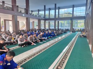 Suasana khidmat menyelimuti masjid Jabal Rahmah Mapolda saat seluruh personel yang muslim berkumpul mengikuti kegiatan Binrohtal yang diisi dengan yasinan, lantunan Asmaul husnah, nasehat agama dan ditutup dengan doa, Kamis (3/10/24). Binrohtal menandakan komitmen Polda Sulbar dalam membangun pondasi spiritual yang kuat bagi para personelnya.