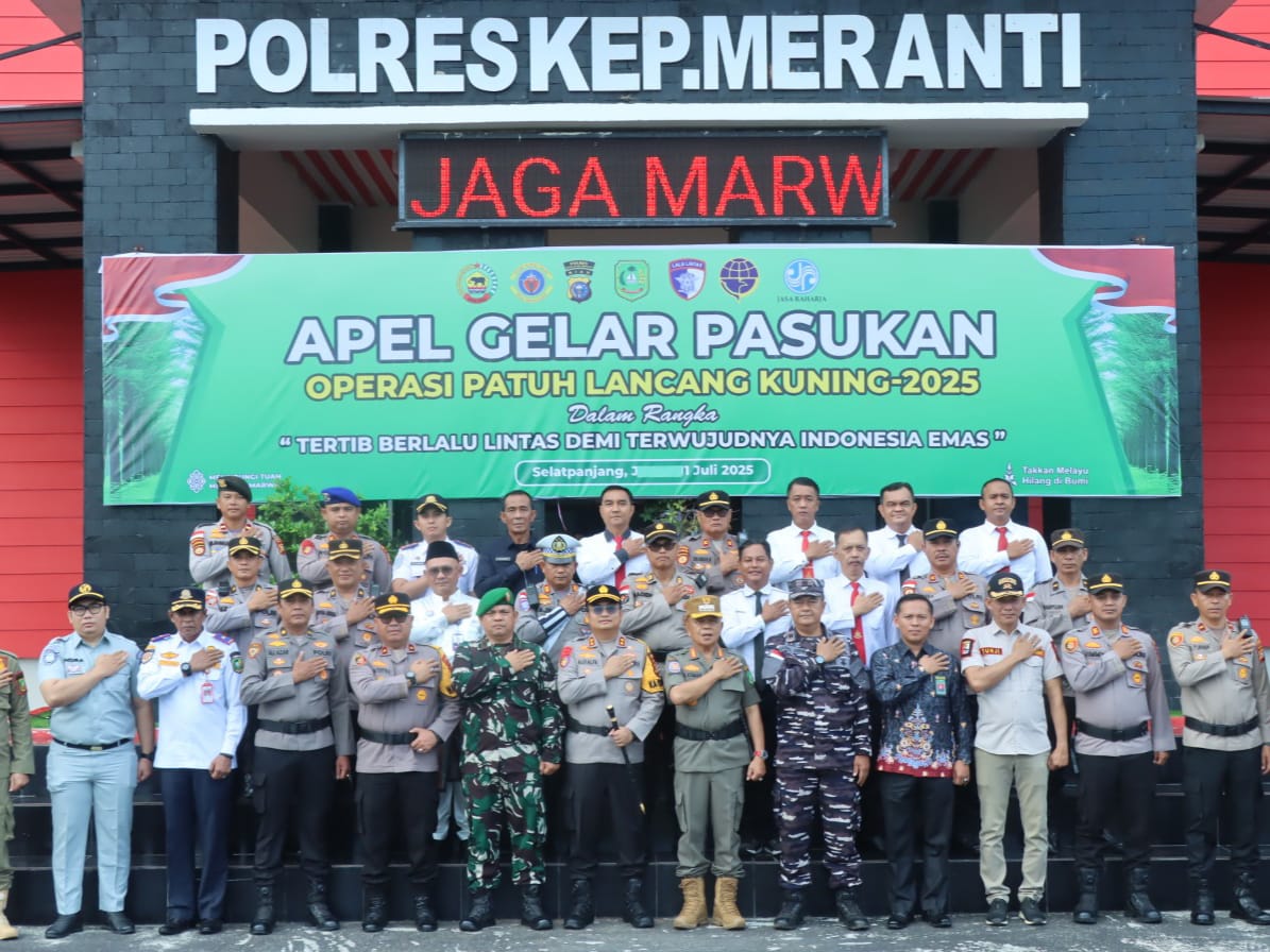 Mediatargetbuser.id. MERANTI – Polres Kepulauan Meranti Melaksanakan Apel Gelar Pasukan Dalam rangka Operasi Patuh Lancang Kuning 2025 di Lapangan Apel Mapolres Meranti, Jalan Lintas Gogok Desa Gogok Darussalam Kecamatan Tebing Tinggi Barat, (14/07/2025).
