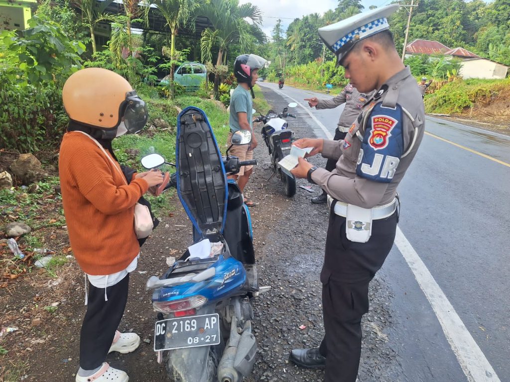 Mediatargetbuser.id, Polda Sulbar – Demi mewujudkan Kamseltibcarlantas (Keamanan, Keselamatan, Ketertiban dan Kelancaran Lalu Lintas), Satuan Patroli Jalan Raya (PJR) Ditlantas Polda Sulbar menggelar razia rutin di Kelurahan Lengke, Kecamatan Kalukku, Kabupaten Mamuju.