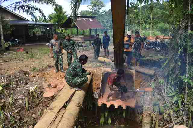 Kodim 0211/TT_Satuan Tugas (Satgas) TNI Manunggal Membangun Desa (TMMD) Reguler ke-126 Kodim 0211/TT Kabupaten Tapanuli Tengah Sumatera Utara ( Sumut) membangun jembatan penghubung antar desa untuk memperkuat akses jalan baru hasil program TMMD.