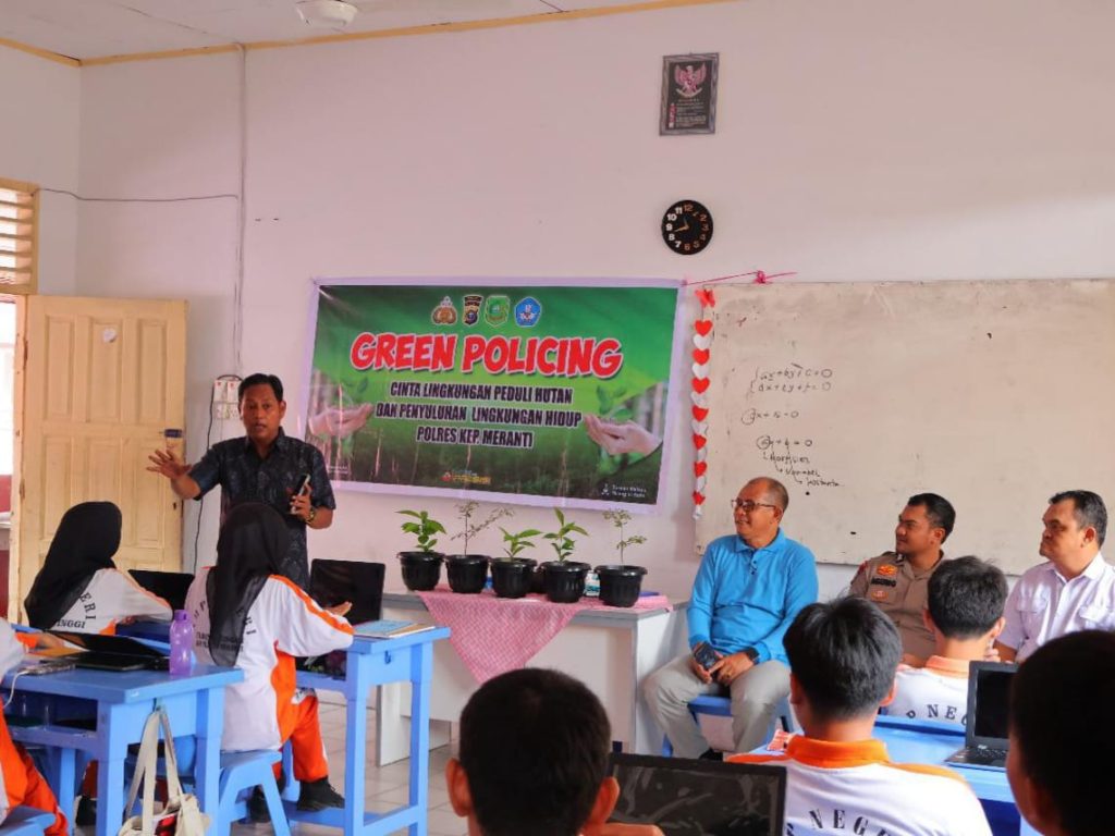 Polres Kep. Meranti menterjemahkan konsep Green Policing yang menjadi kebijakan Kapolda Riau dalam bentuk kegiatan edukasi perlindungan lingkungan dan penanaman pohon di sekolah sekolah wilayah Kab. Kep. Meranti.