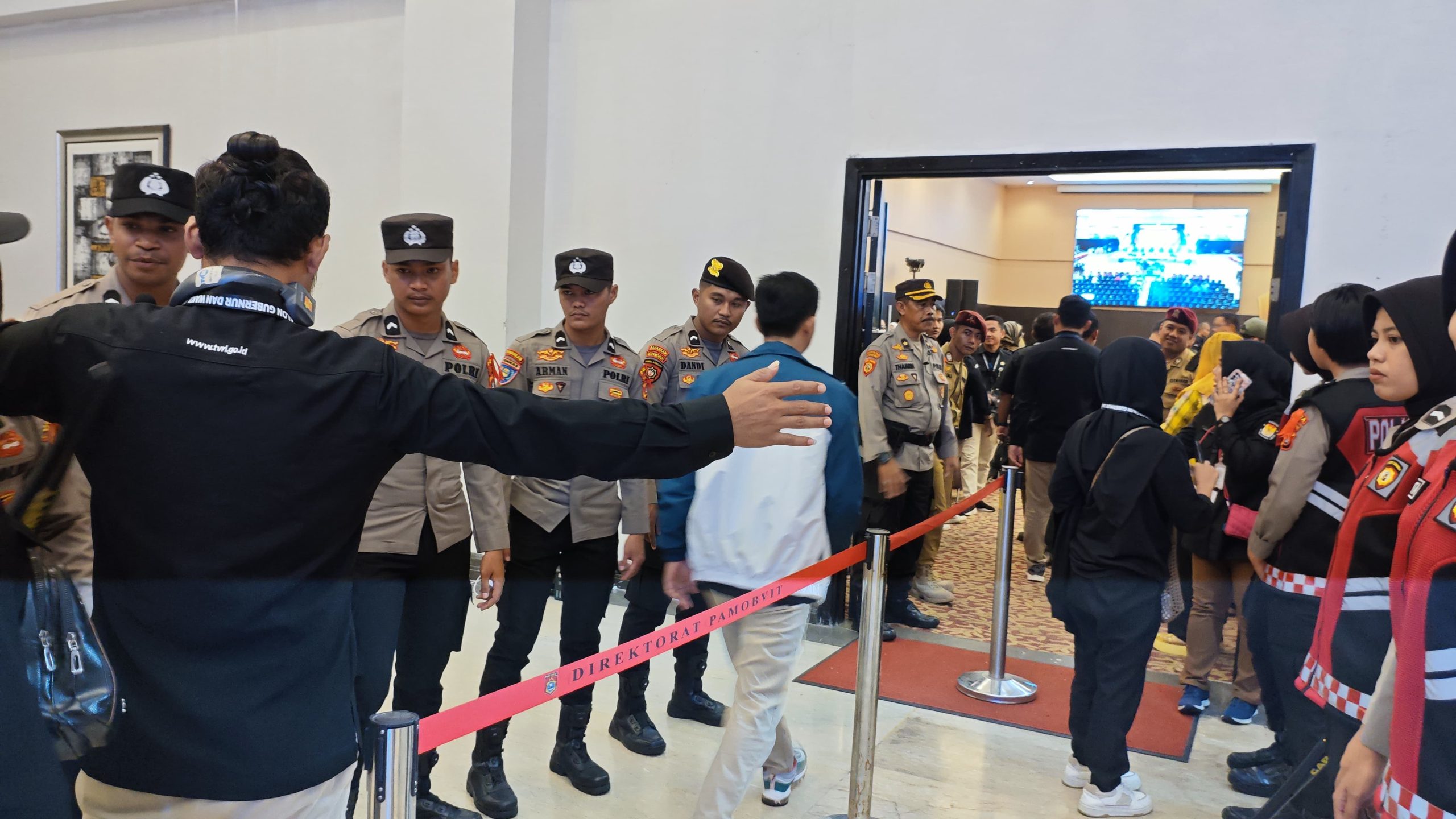 Mediatargetbuser.id, Polda Sulbar – Tak mau kecolongan dengan terjadinya hal-hal yang tidak diinginkan selama pelaksanaan pengamanan debat publik kedua Cagub/Cawagub yang diselenggarakan di Ball Room Hotel d’Maleo, Polda Sulbar memperketat seleksi pintu masuk ruang debat, Rabu (13/11/24).