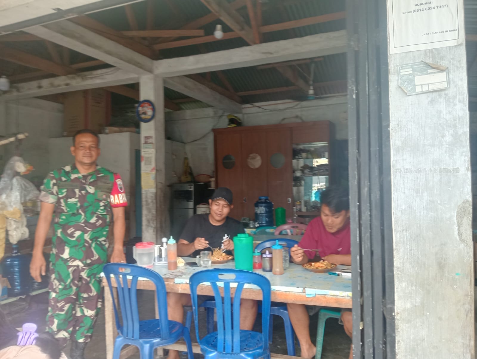TAPTENG_Dalam membina kebersamaan dengan warga binaan, Serda.Rianto Aritonang. melaksanakan kegiatan Komunikasi Sosial (Komsos). Bertempat di salah satu warung, yang berlokasi di Kelurahan.Naipospos Barat. Kec.Sorkam.Kabupaten Tapanuli Tengah.