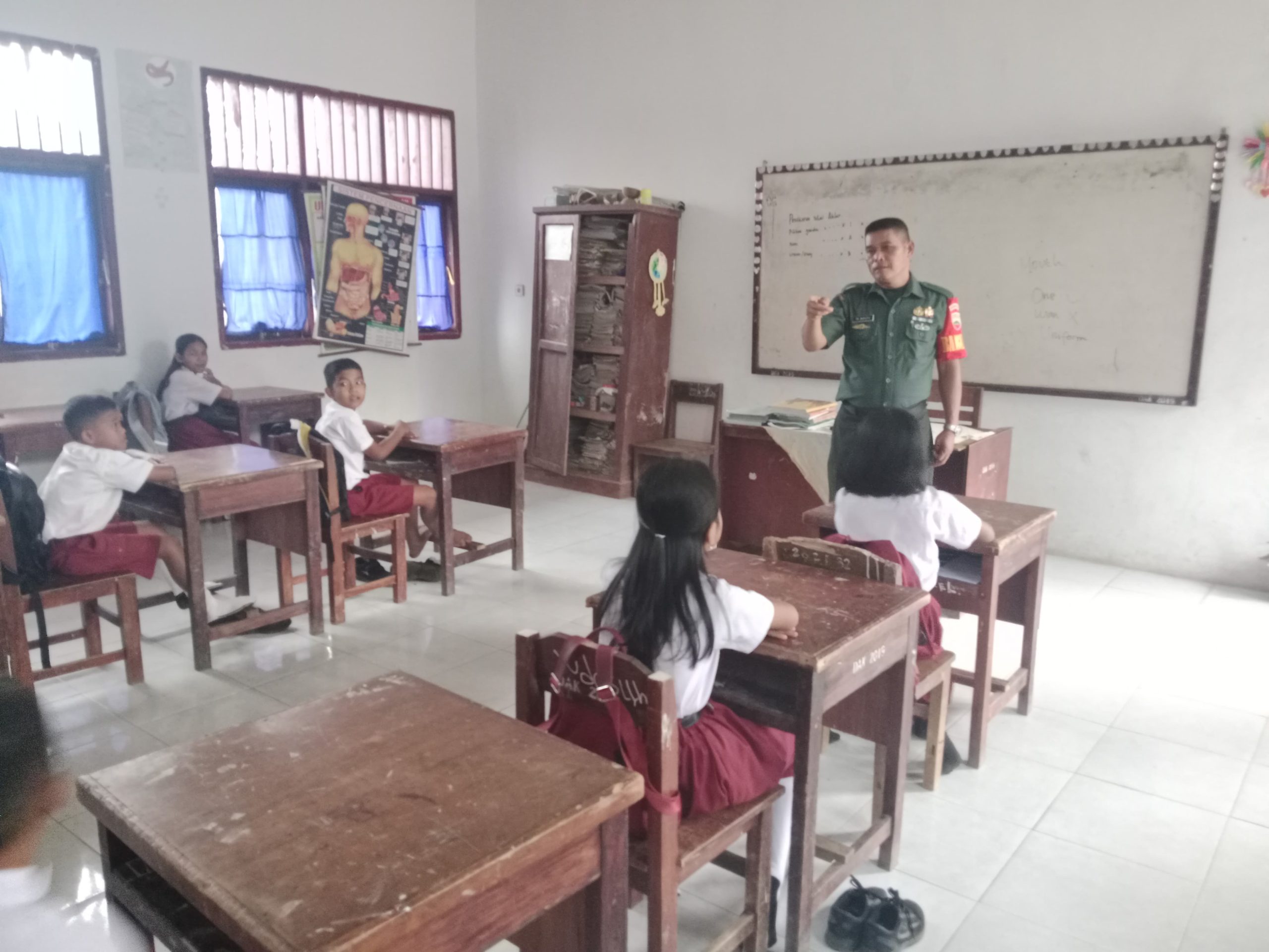 Tapteng-Guna menumbuhkan jiwa patriotisme terhadap generasi muda penerus bangsa, Bintara Pembina Desa (Babinsa) Koramil 04/Pinangsori Serda TN.Barutu memberikan Wawasan Kebangsaan (Wasbang) kepada siswa-siswi SDN 2 Sibabangun di Kel. Sibabangun Kec. Sibabangun Kabupaten Tapanuli Tengah, Kamis (17/07/2025).